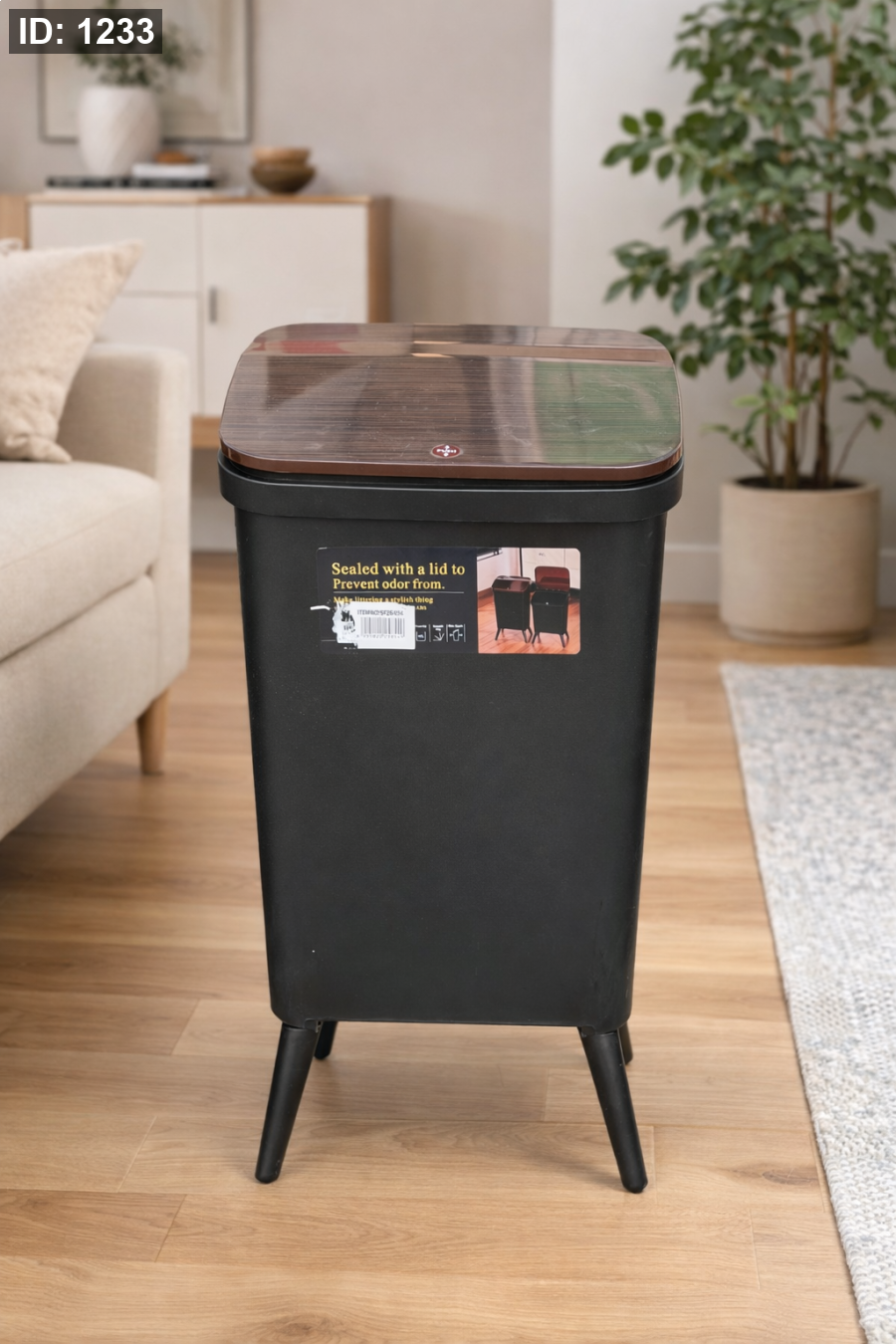 سلة نفايات مع ارجل خشب