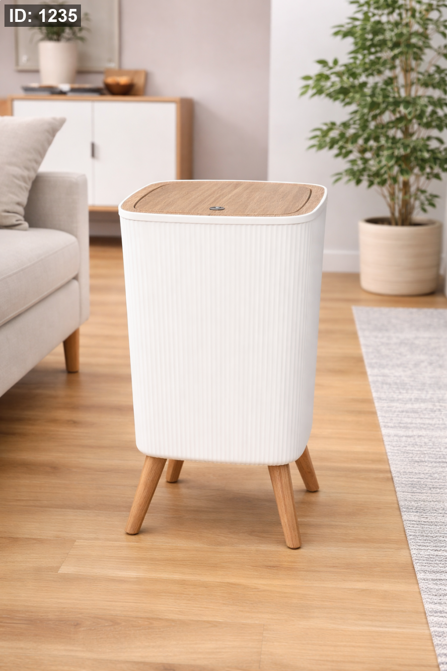 سلة نفايات مع ارجل خشب