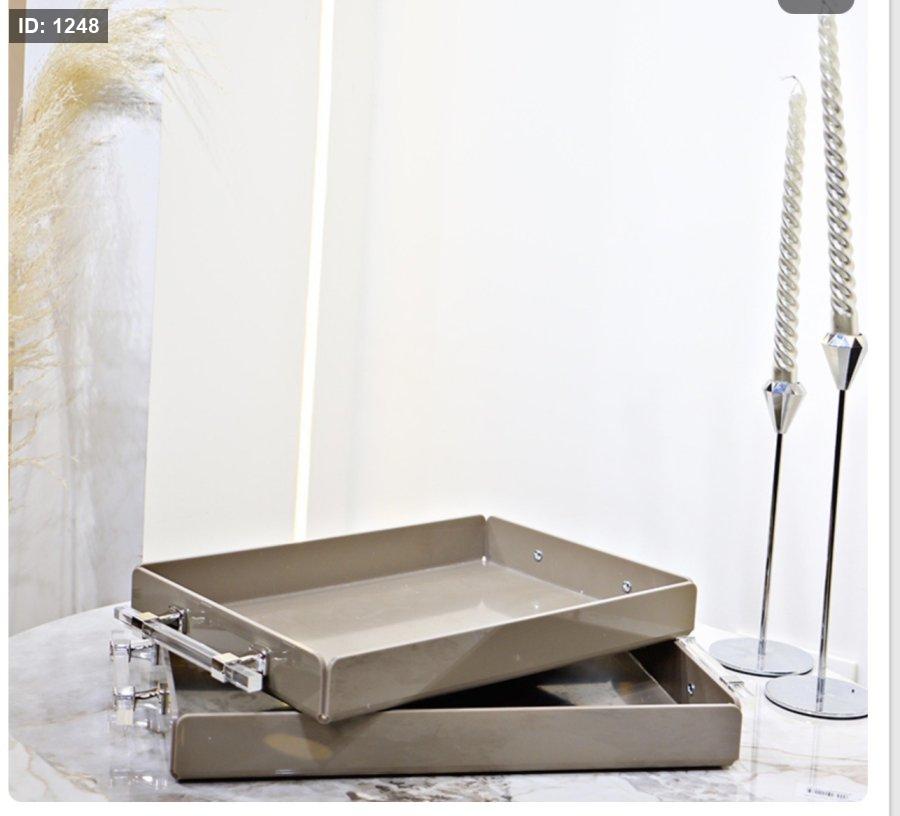 طقم صواني/2 مستطيل 31*21سم بلاستك رمادي بيدين اكرلك شفاف ZD29/1 =ر61